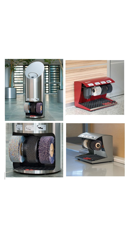 With its extravagant and eye-catching form the Ellipse turns into a design highlight in your entry area. Two different versions of the Ellipse turn the shoe polishing into something extraordinary. The results of both machines, whether it has a polish dispenser or not, will be: quick, precise, satisfying and most of all shining just like the high-quality brushed stainless steel surface of this design highlight presents itself. Whether the model Ellipse will be placed next to a wall, in a corner or standing freely in the room, with its classic column design it always cuts a fine figure. Especially spacious corridors, wide entrance halls or stylish lobbies will be appropriate sites for a machine like this.